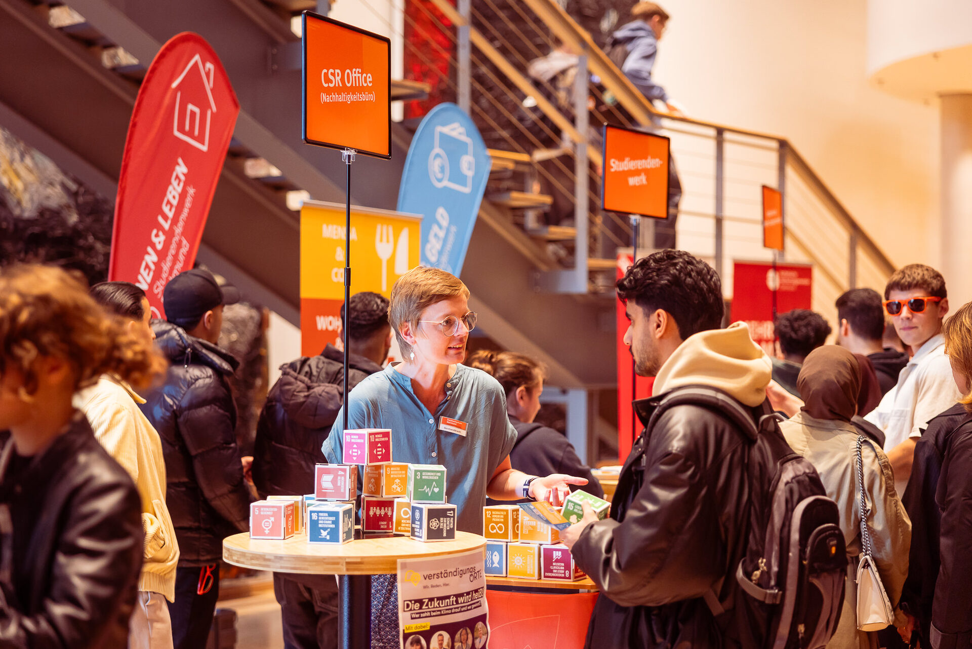 Die Fachhochschule Dortmund bietet dafür den nötigen Raum und für die Herausforderungen im Studium eine Vielzahl an Unterstützungsmöglichkeiten. Im Foyer des Konzerthauses präsentierten sich neben den Fachschaften auch Career Service, Studierendenwerk, Hochschulsport, Familienservice, Mathe-HelpDesk, International Office und viele weitere den Neuen.