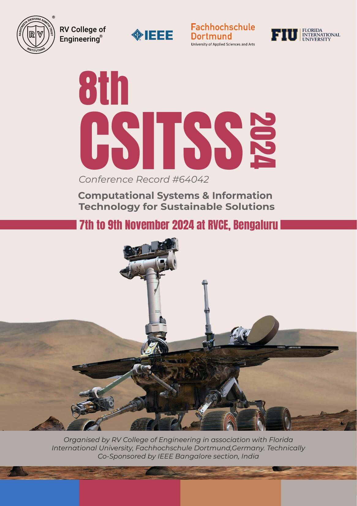 CSITSS 2024 is organized by the RV College of Engineering in Bengaluru in cooperation with Florida International University, Fachhochschule Dortmund and other partners. The IEEE has officially approved the conference. The IEEE Bangalore Section (India) is providing technical support for the conference.