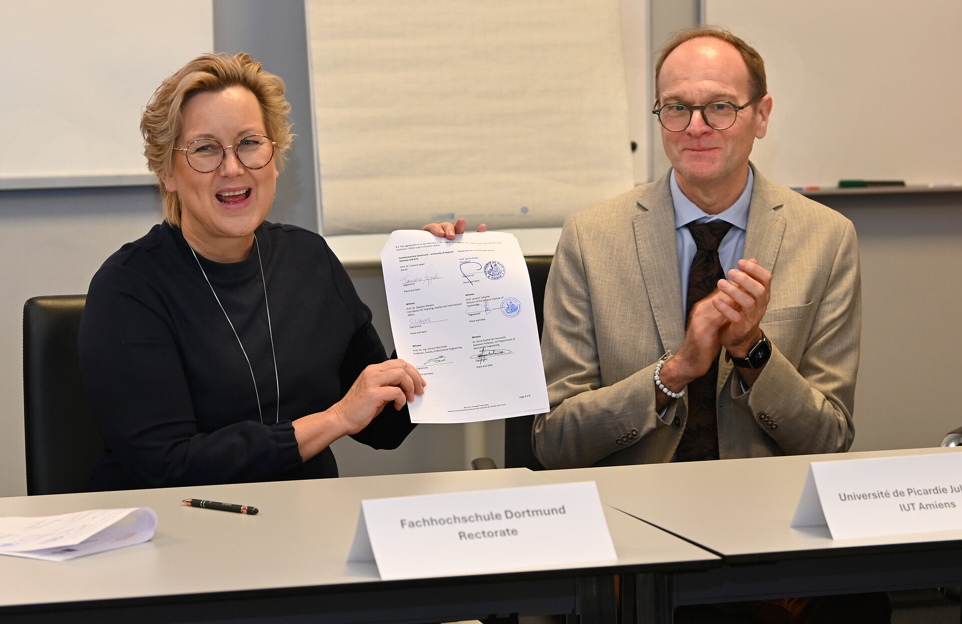 Die Fachhochschule Dortmund macht es offiziell: Ihre Partnerschaft mit der französischen Université de Picardie de Jules Verne (UPJV) in Amiens wurde mit einem Memorandum of Understanding auf ein neues Fundament gestellt. Davon profitieren Studierende, Lehrende und Forschende gleichermaßen.