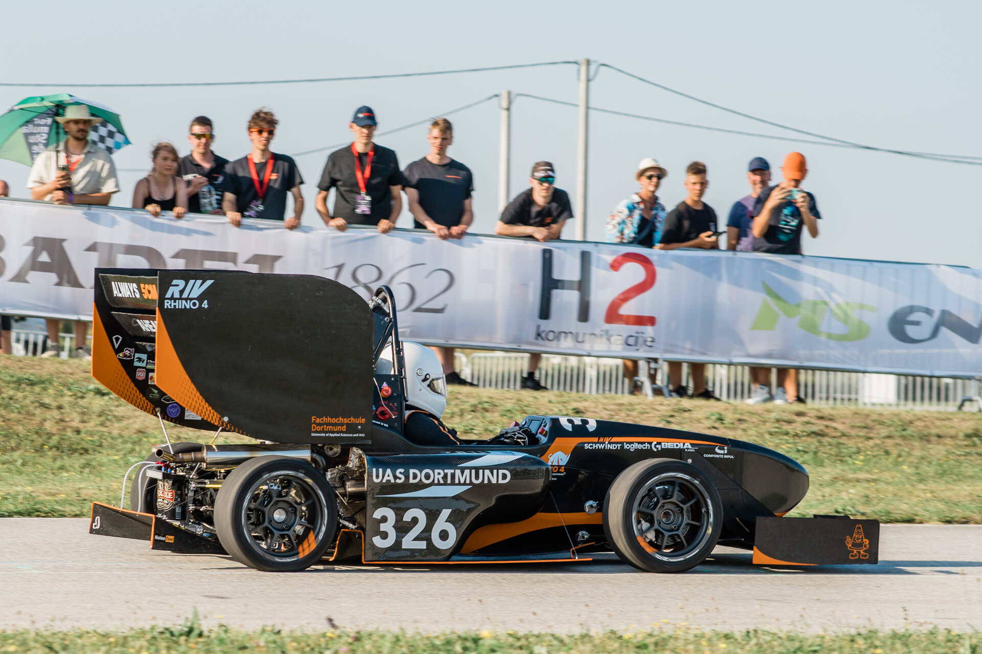 Every year, the FH team builds a new car - from scratch: Chassis, running gear, electrics. "We only have a good six months to do this," says Markus Dec. The regulations for the coming season are published at the beginning of November, then the planning phase begins, followed by the construction phase. The latter in particular is accompanied by many long days and nights in the workshops at Fachhochschule Dortmund and on the LaSiSe test track in Selm. All alongside their studies. With just under 20 members, the Dortmund Race-Ing. team is one of the smaller teams in Formula Student. At large universities with teams of 50 to 100 students, the work is spread over many more shoulders. This made the success at the Alpe Adria in Croatia all the more gratifying.