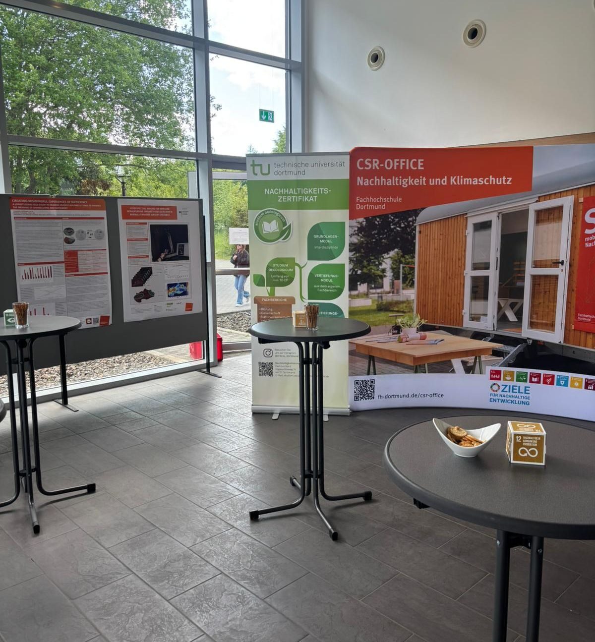 In der Woche vom 19. bis zum 22. Mai 2025 hat die Nachhaltigkeitswoche stattgefunden, die von den Nachhaltigkeitsbüros und den Allgemeinen Studierenden-Ausschüssen (AStA) der Fachhochschule Dortmund und der Technischen Universität Dortmund sowie dem Studierendenwerk Dortmund und der Hochschulgruppe CampusForFuture organsieirt wurde. Die Woche bot eine Mischung aus Workshops, Vorträgen sowie Aktions- und Informationsständen. Bei dem Markt der Möglichkeiten am ersten Tag haben wir an unserem Stand über die Möglichkeit einer Promotion an der Fachhochschule Dortmund und über nachhaltige Optionen informiert. Am letzten Tag haben einige unserer Promovierenden ihre nachhaltigen Promotionsprojekte im Rahmen einer Posterausstellung bei der Verleihung des Impact Cups in der kostbar präsentiert.