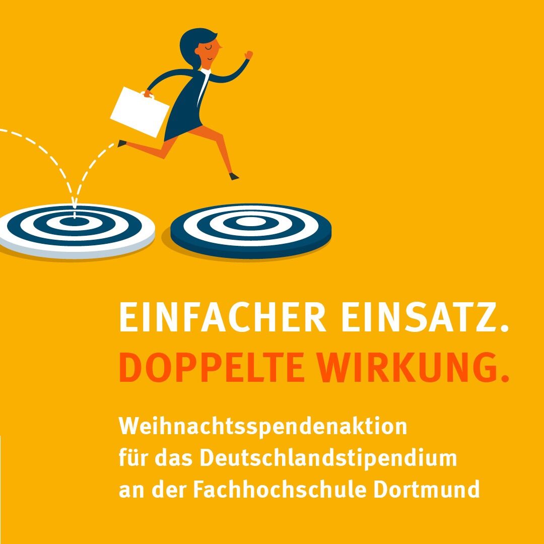 Wir sammeln alle Spenden auf dem Konto der Fachhochschule Dortmund. Ist jeweils der Betrag von 1.800 € erreicht, verdoppelt der Bund die Spendensumme und es kann ein Deutschlandstipendium für die Dauer eines Jahres im Wert von 3.600 € vergeben werden. Ihre Spende wird zu 100% für ein Deutschlandstipendium verwendet.