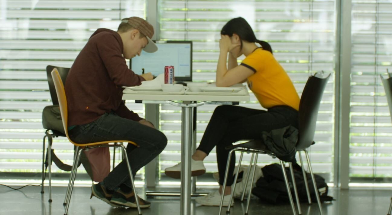 Sie befinden sich in den studentischen Arbeitsplätzen in der Sonnenstraße 96-100, im Gebäude A. Rechts und links sind große Fensterfronten, mit Blick in die Innenhöfe. Im Raum selbst sind weiße Tisch aufgereiht in jeweils 5-6 Reihen. Gerade aus ist eine gläserne Treppe, die hoch auf eine weitere Ebene führt. Links kommen Sie durch eine Glastür raus in einen Bereich des Innenhofs. Dort ist eine höhere Ebene mit einem Holzboden, von dort führt eine Treppe runter in einen Steingarten mit mehreren bepflanzten Beeten, die auch Sitzmöglichkeiten bieten. Innerhalb der 360 Grad Räume befinden sich mehrere Touchpoints mit weiteren Informationen.